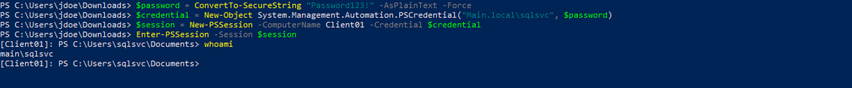 $session = New-PSSession -ComputerName Client01 -Credential $credential
