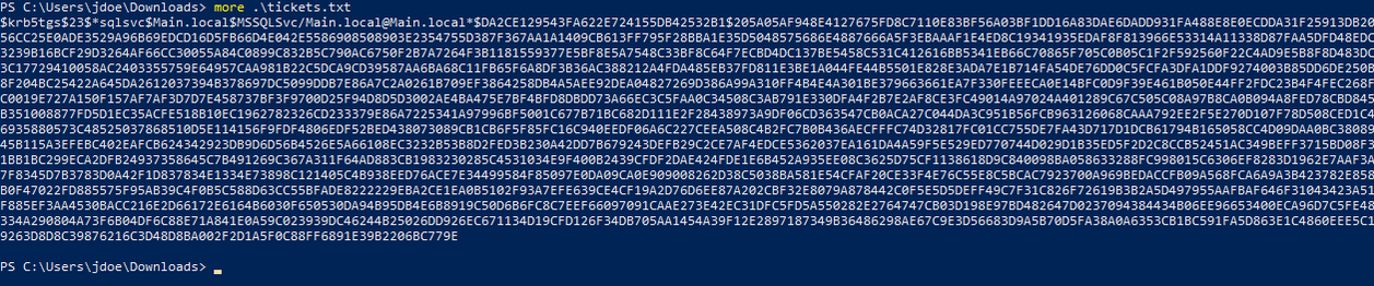 We have obtained a ticket, which we can transfer to our Kali machine and attempt to crack, following the same approach as before.