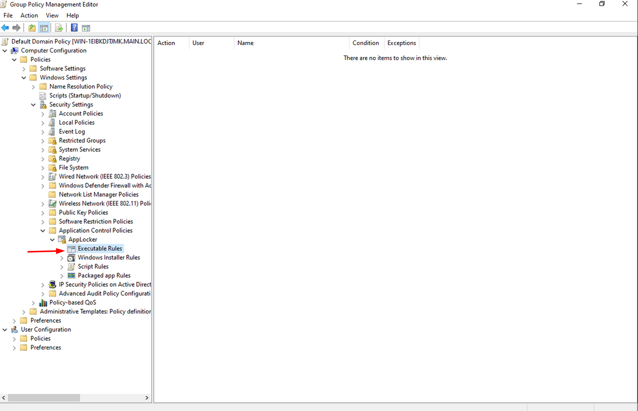 Computer Configuration → Policies → Windows Settings → Security Settings → Application Control Policies → AppLocker