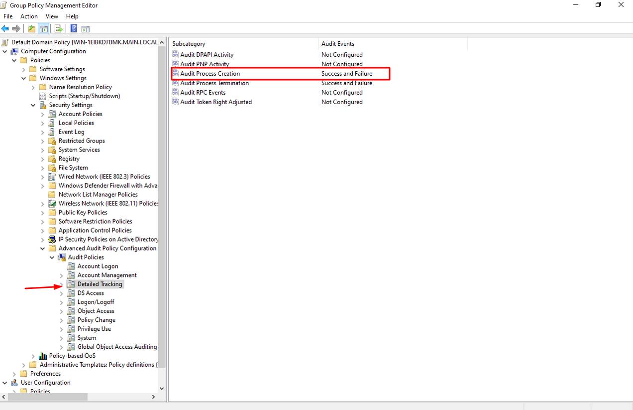 Computer Configuration → Policies → Windows Settings → Security Settings → Advanced Audit Policy Configuration → Audit Policies