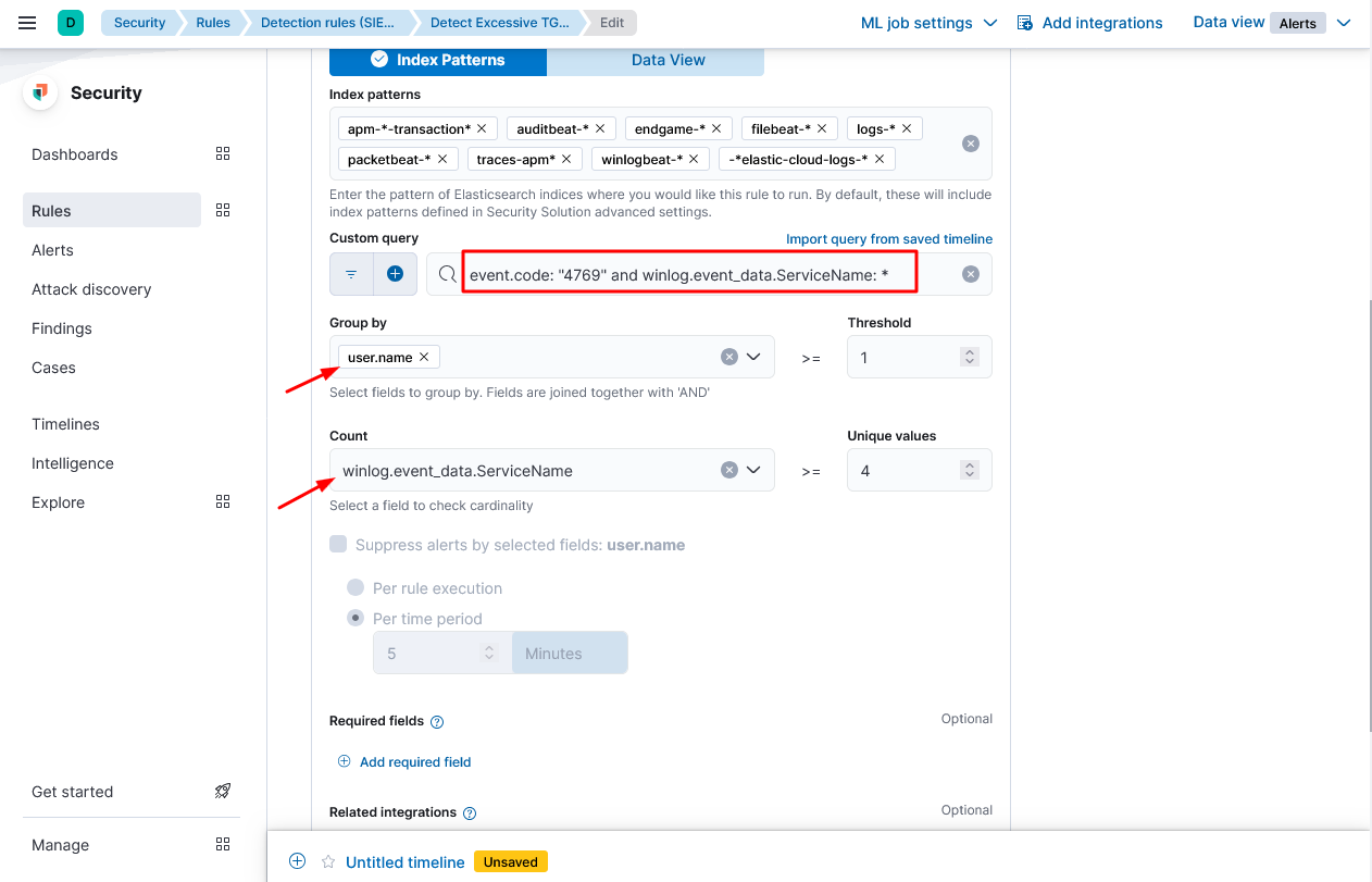 Next, we will create a second rule to generate an alert when a user requests four tickets within short time.