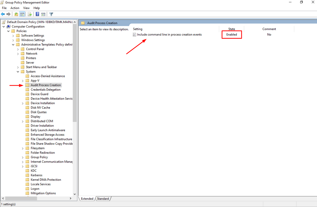 Computer Configuration → Policies → Administrative Templates → System → Audit Process Creation