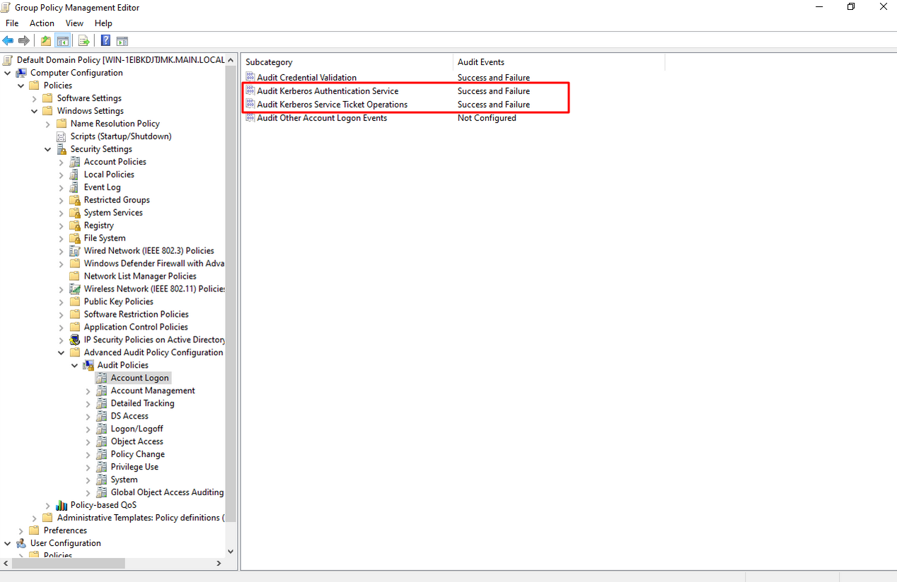 * Audit Kerberos Service Ticket Operations: Success and Failure (Event ID 4769).