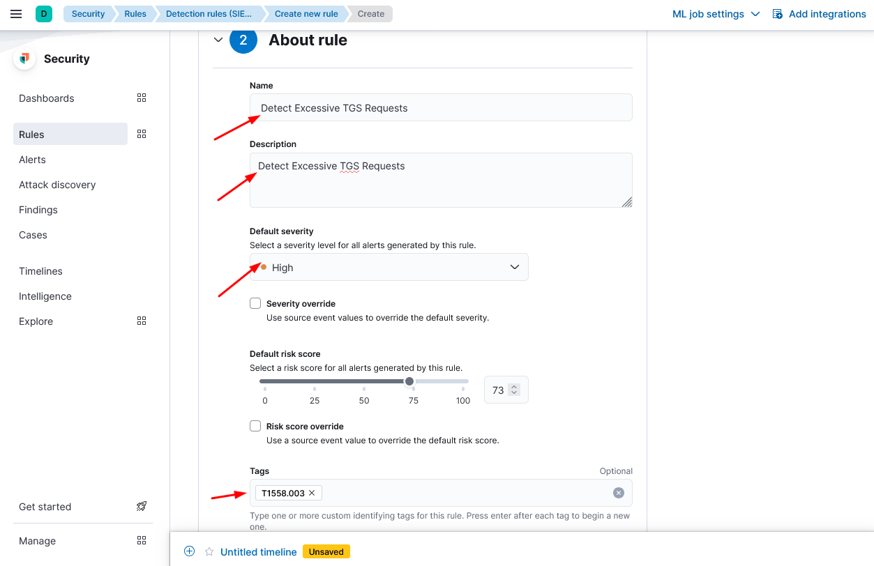 Now, let's configure ELK to create rules that generate alerts when this attack occurs.